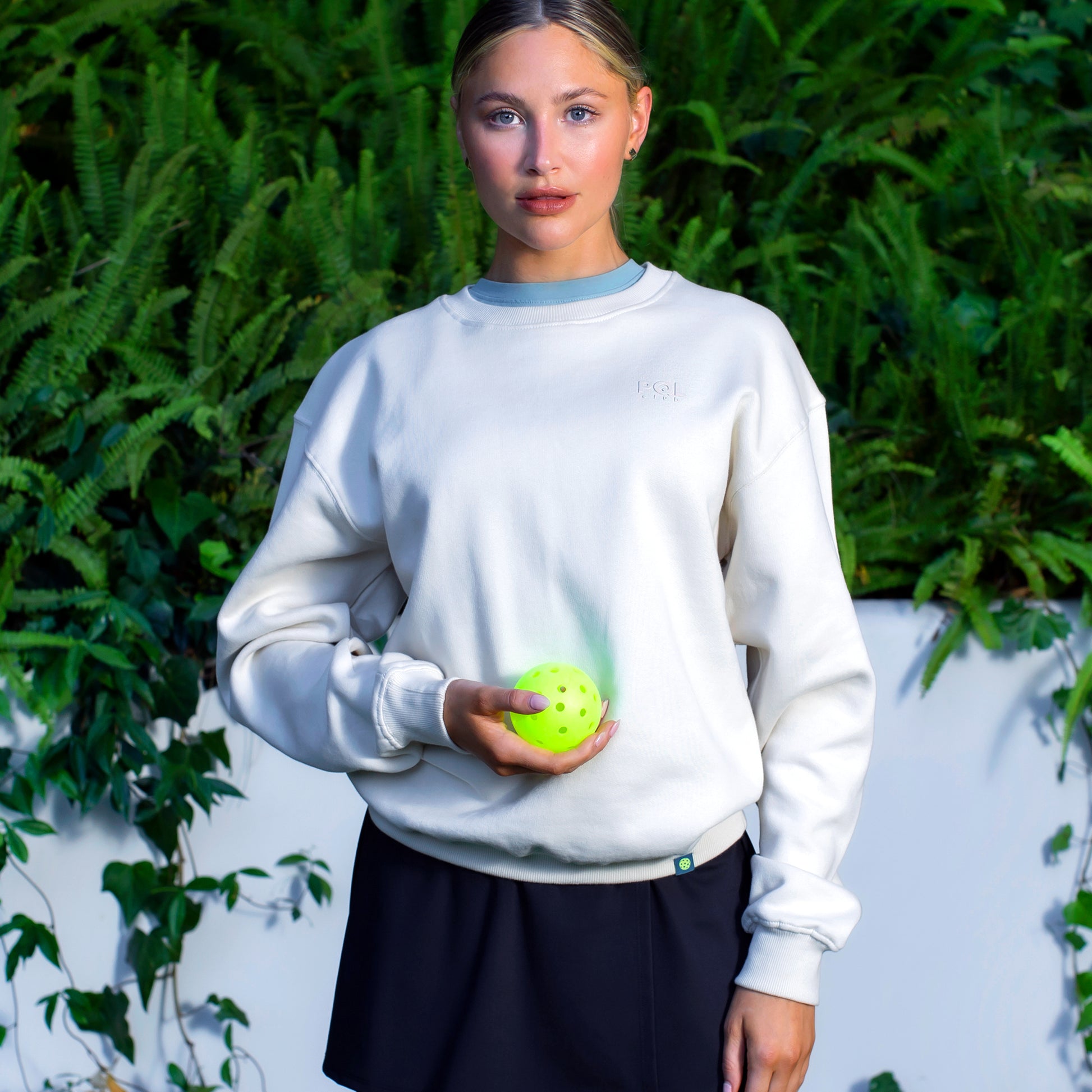 Premium combed cotton crewneck. Warm, breathable fabric with smooth exterior and plush interior. Perfect for layering. Wear it on the court, and all day long.